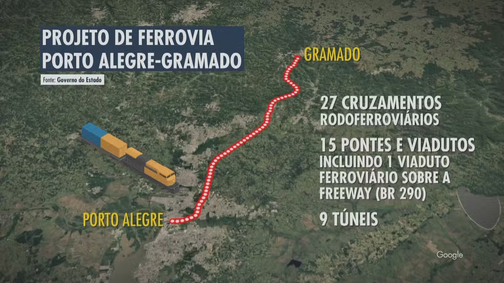 O trajeto, que terá cerca de 84 km e percorrerá 19 municípios (com influência em 22), incluirá infraestrutura complexa como 27 cruzamentos rodoferroviários, 15 pontes e viadutos – incluindo uma travessia elevada sobre a Freeway (BR-290) – e nove túneis. As plataformas de embarque serão estrategicamente localizadas próximas ao Aeroporto Salgado Filho, em Porto Alegre, e na Avenida das Hortênsias, entre Gramado e Canela.